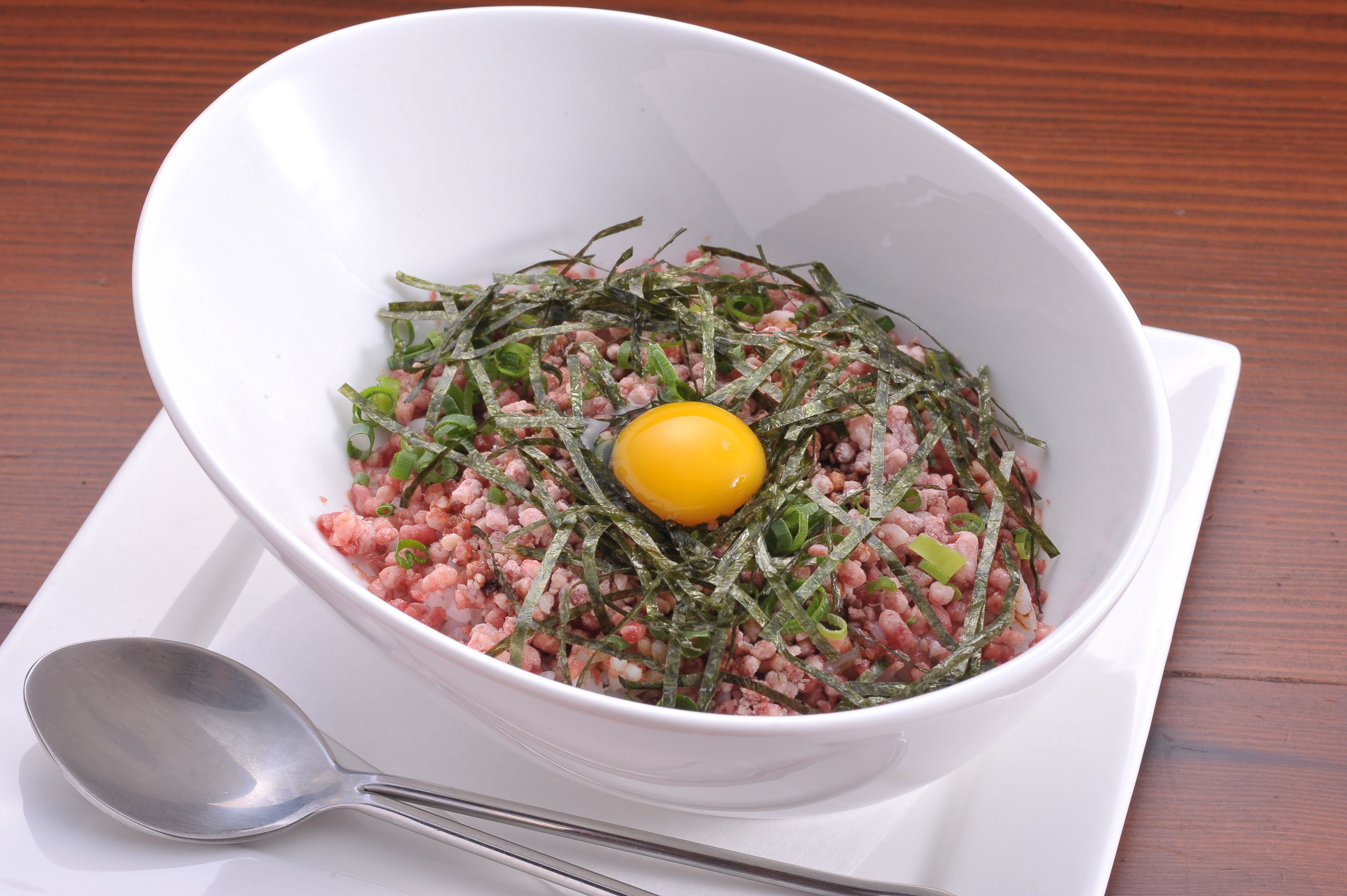 桜肉(馬肉)の下にある納豆と混ぜてお召し上がりください。 これを目当てに来店いただくお客様もいらっしゃる、名物の一つです。 〆にご飯と食べるもよし、焼肉前にたべるもよし。桜肉の新たな一面を感じていただけると思います。