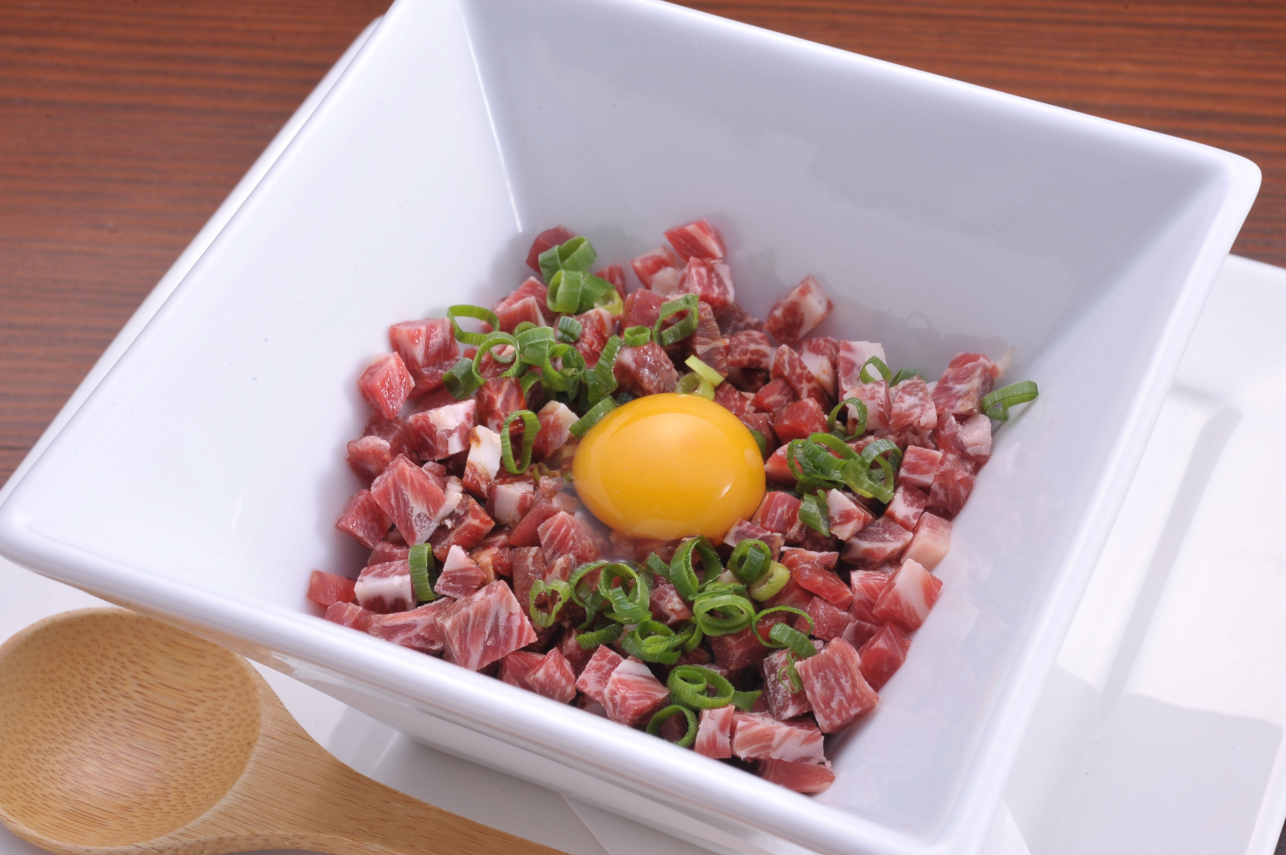 桜肉(馬肉)の下にある納豆と混ぜてお召し上がりください。 これを目当てに来店いただくお客様もいらっしゃる、名物の一つです。 〆にご飯と食べるもよし、焼肉前にたべるもよし。桜肉の新たな一面を感じていただけると思います。